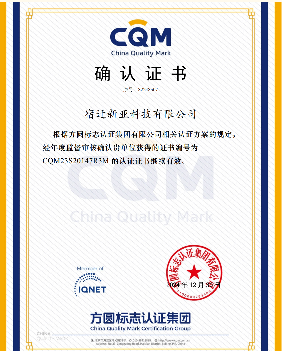 選擇新亞--品質保證